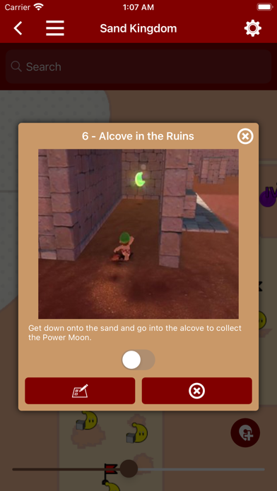 Unofficial offline maps for Super Mario Odyssey. The companion features: - Kingdom maps - Map positions of: - Power Moons - Regional (Purple) Coins - Checkpoints - Crazy Cap Stores - Paintings - Moon Rocks - Talkatoo - Hint Art - Minigames - Luigi - Checklists for your collected Power Moons, Purple Coins, Crazy Cap Store items, Cappy Captures, Music Tracks and amiibos - List of game compatible amiibos - List of all costumes - List of all enemies - List of all Crazy Cap Store items - List of all Cappy captures - List of all Music Tracks - List of easter eggs and secrets - Stats page for detailed kingdom progress - Boss Guides - iCloud Sync - 3D touch shortcuts from app icon - Progress widget - Share functionality to get free IAPs